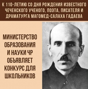 МИНИСТЕРСТВО ОБРАЗОВАНИЯ И НАУКИ ЧР ОБЪЯВЛЯЕТ КОНКУРС НА ЛУЧШИЕ ПРОИЗВЕДЕНИЯ О ЖИЗНИ И ТВОРЧЕСКОЙ ДЕЯТЕЛЬНОСТИ МАГОМЕД-САЛАХА ГАДАЕВА