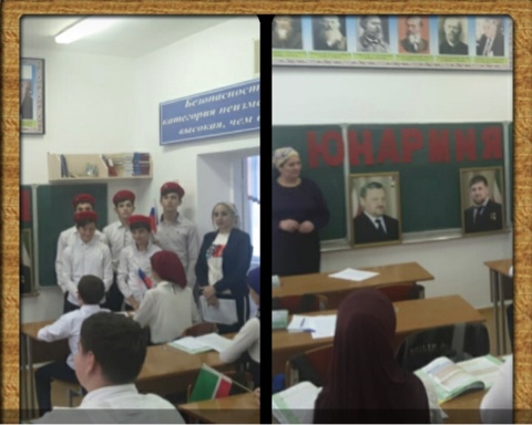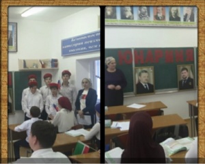 Макка Абадиевна,совместно с Юнармейцами провела диспут старшеклассников на тему: " Служить отечеству суждено тебе и мне".