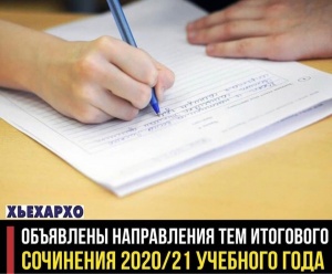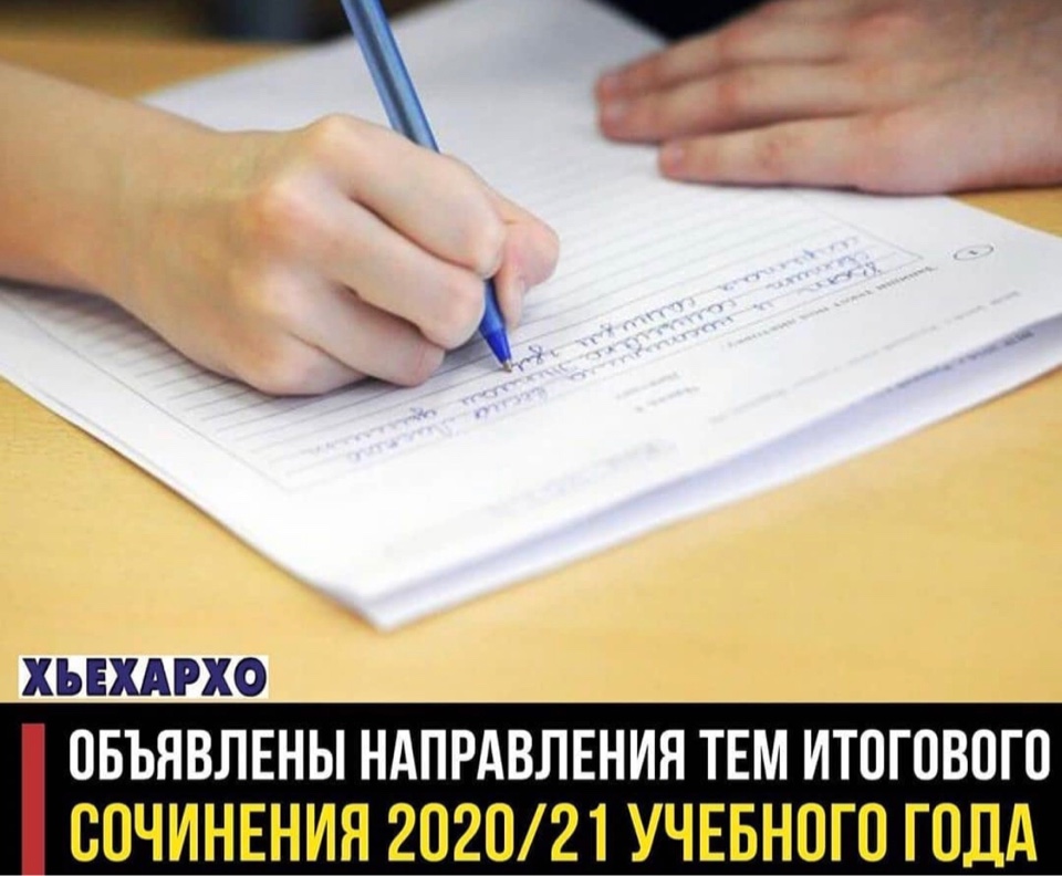 28.08.2020В ходе прошедшего сегодня Общероссийского родительского собрания были озвучены направления тем итогового сочинения в выпускных классах в 2020/21 учебном году.«Традиционно в начале учебного года мы объявляем открытые направления для тем итогового сочинения для выпускников школ, – заявил министр просвещения Сергей Кравцов. – Само сочинение пройдёт в декабре, и сами темы будут объявлены перед началом сочинения». 1. Забвению не подлежит (исторические события, общественные явления, произведения искусства, память о которых не имеет срока давности).2. Я и другие (человек среди людей; проблема конфликта, понимания, что значит «быть собой»).3. Между прошлым и будущим: портрет моего поколения (культурные запросы, литературные пристрастия, жизненные оценки, отношения с семьей и обществом).4. Время перемен (тема изменений, открытий, вызовов, стоящих перед человеком и человечеством).5. Разговор с собой (внутреннее пространство человека и словесные способы его исследования – вопросы, которые человек задает себе; внутренние переживания; тема совести).#Минпросвещения #итоговоесочинение #газетаХьехархо