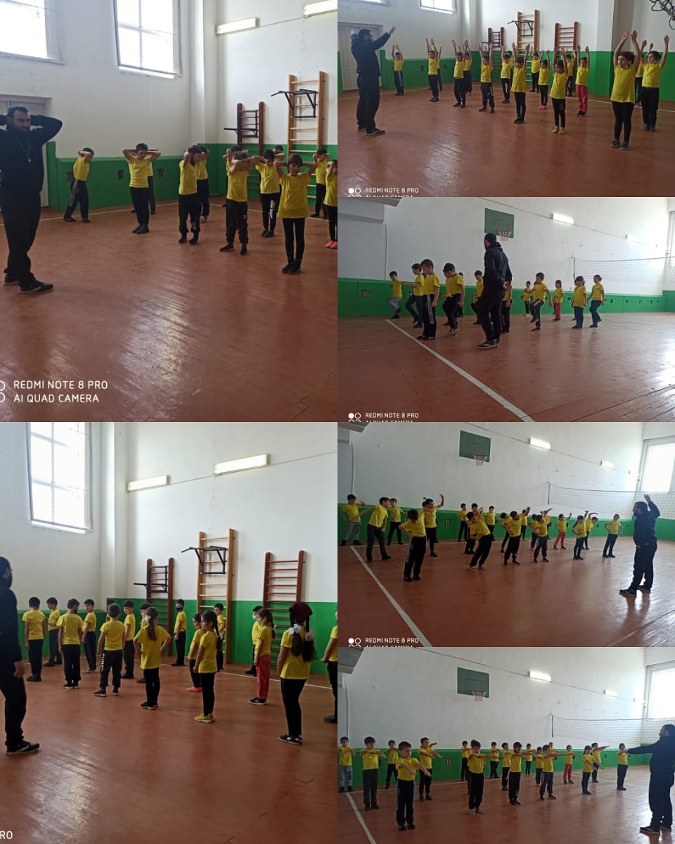 Учитель Хайбулин М.А. провел открытый урок физкультуры во 2 "г" классе по теме :"Равновесие.Строевые упражнения".