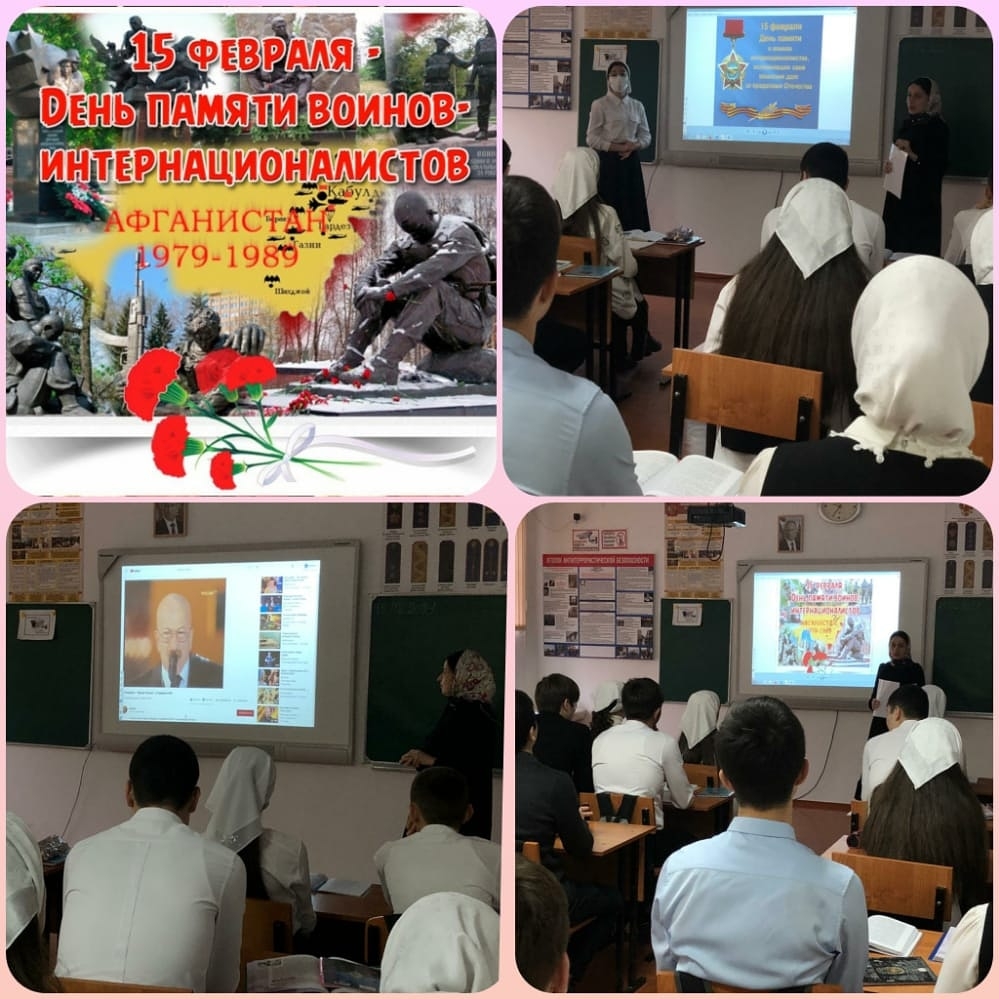 15.02.202115 февраля ежегодно с 2011 года в Российской Федерации отмечается официальная памятная дата- День памяти о россиянах, исполнявших служебный долг за пределами Отечества. Дата приурочена к завершению вывода советских войск из Афганистана.И сегодня , 15 февраля 2021 года, учитель истории МБОУ "Шелковская СОШ#3" Хамдиева Р.Х. провела Урок Мужества в 10"а" классе на тему:"Эхо афганской войны".