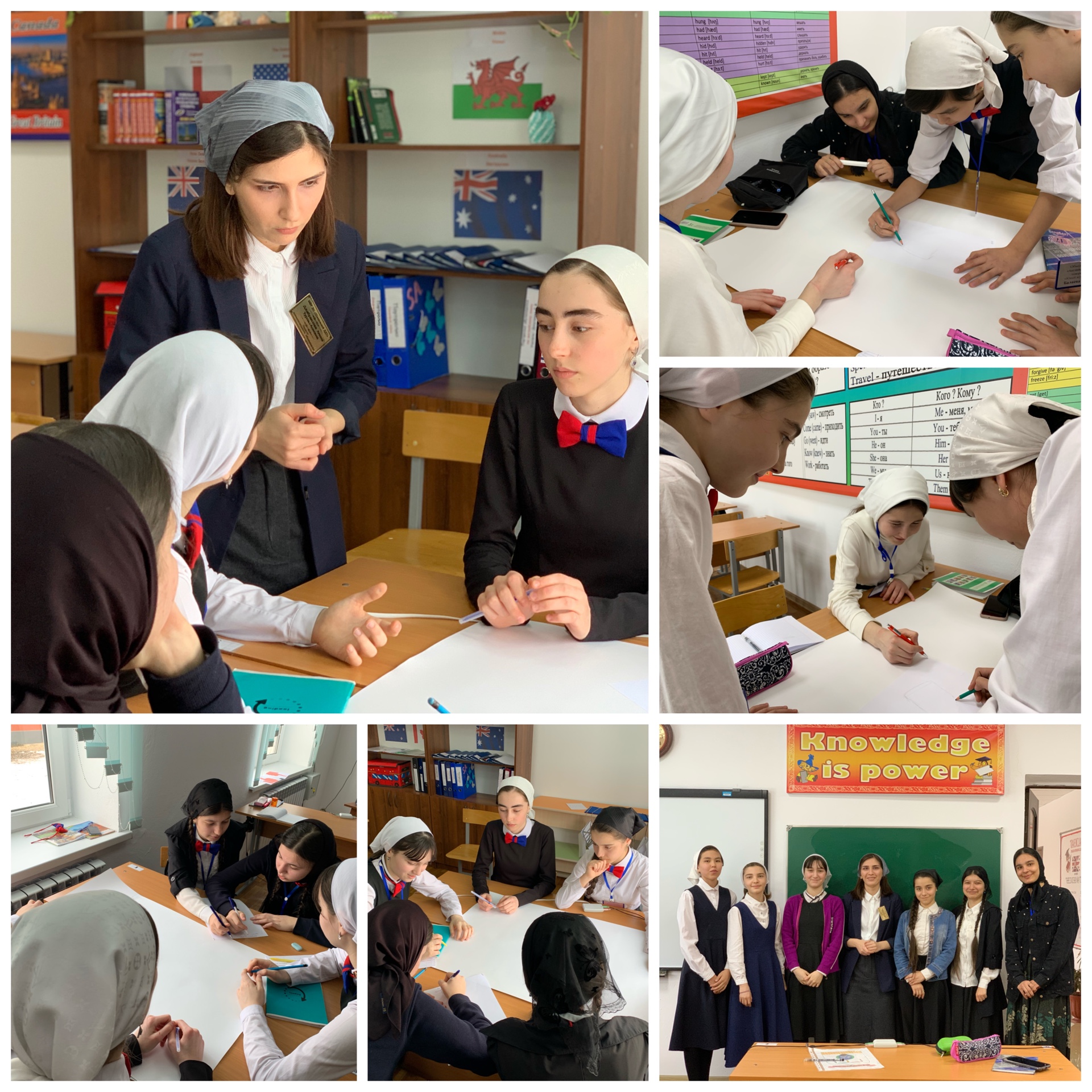 06.03.2021В рамках Недели открытых дверей на муниципальной площадке в работе со способными детьми проведено занятие в объединении «Юный лингвист». Молодой педагог МБУ ДО «Шелковской ДДТ» Амина Турпал-Алиевна Джабраилова знакомит ребят с темой «Технологии будущего». Ребятам предложена работа с текстом: выписать незнакомые слова и выражения, составить пересказ текста, ответить на вопросы (работа с лингафонным кабинетом). Наибольший интерес учащихся вызвало выполнение творческого задания – составление «Дерева знаний» и защита группового мини - проекта.