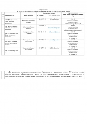 Информация об учреждениях дополнительного образования Шелковского муниципального района.
