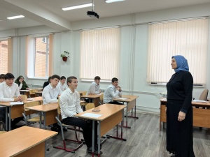 Начальник МУ "Отдел образования Шелковского муниципального района" Хижан Абдулсаидовна посетила пункты ППЭ. Перед началом испытания Х. А. Геремеева обратилась с напутственным словом и пожелала успехов в написании работ.