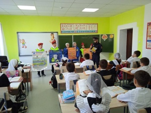 В МБОУ "Сары-Суйская СОШ" была проведена совместная работа инспектора ПДН, активистами ЮИД, ЮК и Юнармия