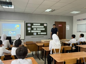 Инспектор отметил, что использование наушников с музыкой и мобильного телефона недопустимо при переходе проезжей части дороги. Кроме того он выразил надежду, что развитие понимания опасности при нахождении на проезжей части детьми-пешеходами позволит снизить дорожно-транспортный травматизм.Велосипедист – это участник дорожного движения, который обязан знать и соблюдать Правила дорожного движения.Особое внимание Муташев Билал уделил правилам езды на велосипедах и самокатах. Рассказал о том, какие именно требования распространяются на водителей велосипедов, самокатов и какие правила должны соблюдать, чтобы избежать дорожных происшествий. В конце встречи инспектор ПДН пожелал детям быть осторожными на дороге. Подобные профилактические мероприятия в виде бесед с детьми направлены на то, чтобы как можно больше школьников помнили о безопасности дорожного движения.