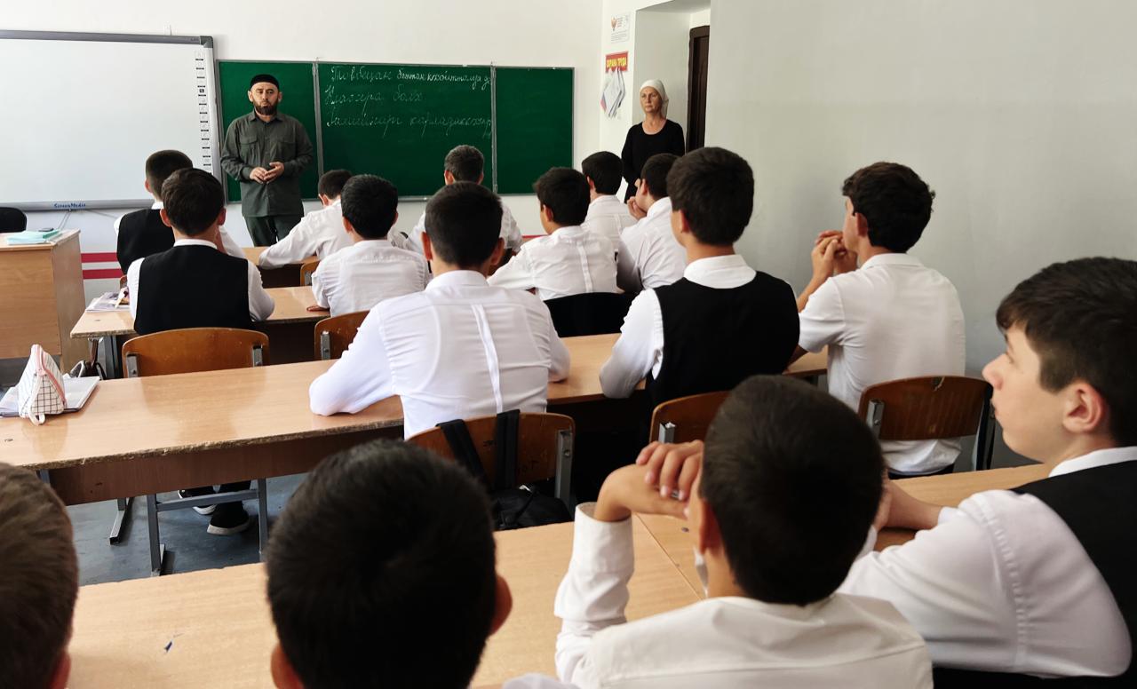 13.09.2024Беседа с мальчиками о поведении педагога-организатора ДНВиР. 13.09.2024 года в МБОУ "Шелковская СОШ №2" педагог -организатор ДНВиР Кусаев Н. М. провёл с мальчиками 7-9 классов беседу о поведении. Цель беседы: воспитание дружелюбия, ответственности за свои поступки. В ходе беседы Кусаев Н. М. объяснил ребятам, что нужно быть друг к другу добрее и терпимее.