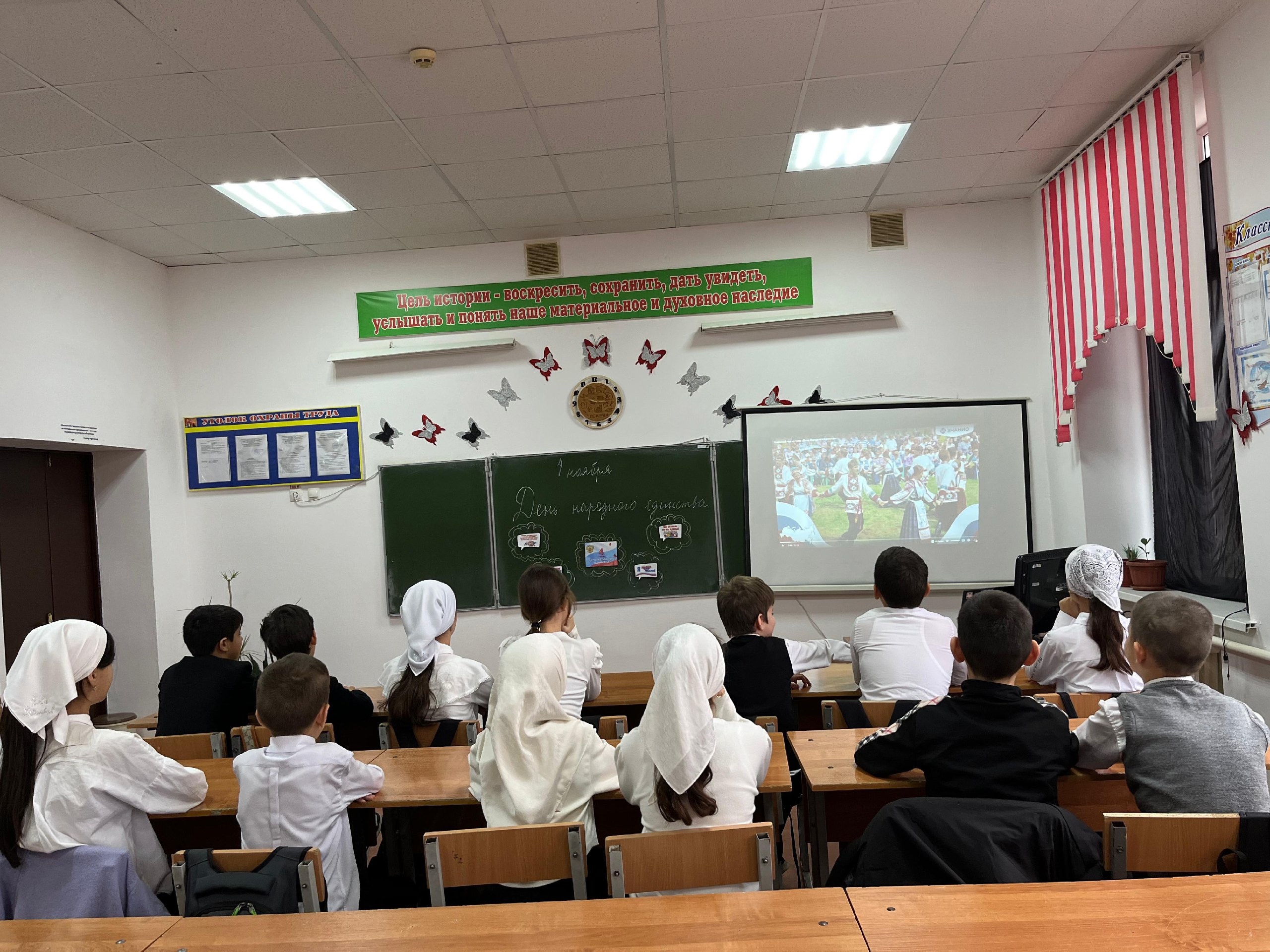 06.11.2024В 5 в классе классный руководитель Абдулаева М. С. провела классный час на тему « День народного единства», с целью развития у учащихся патриотического чувства и любви к родине.Этот праздник отмечается на государственном уровне. Он связан с событиями 1612 года, подвигом наших предков, которые сплотились во имя свободы и независимости родины.Наша родина могучая, бескрайняя, гостеприимная, протягивает руку дружбы и раскрывает объятия всем народам, кто желает жить мирно. Учащиеся с интересом смотрели презентацию и активно отвечали на вопросы учителя, с интересом рассказывали о семейных традициях своей семьи.