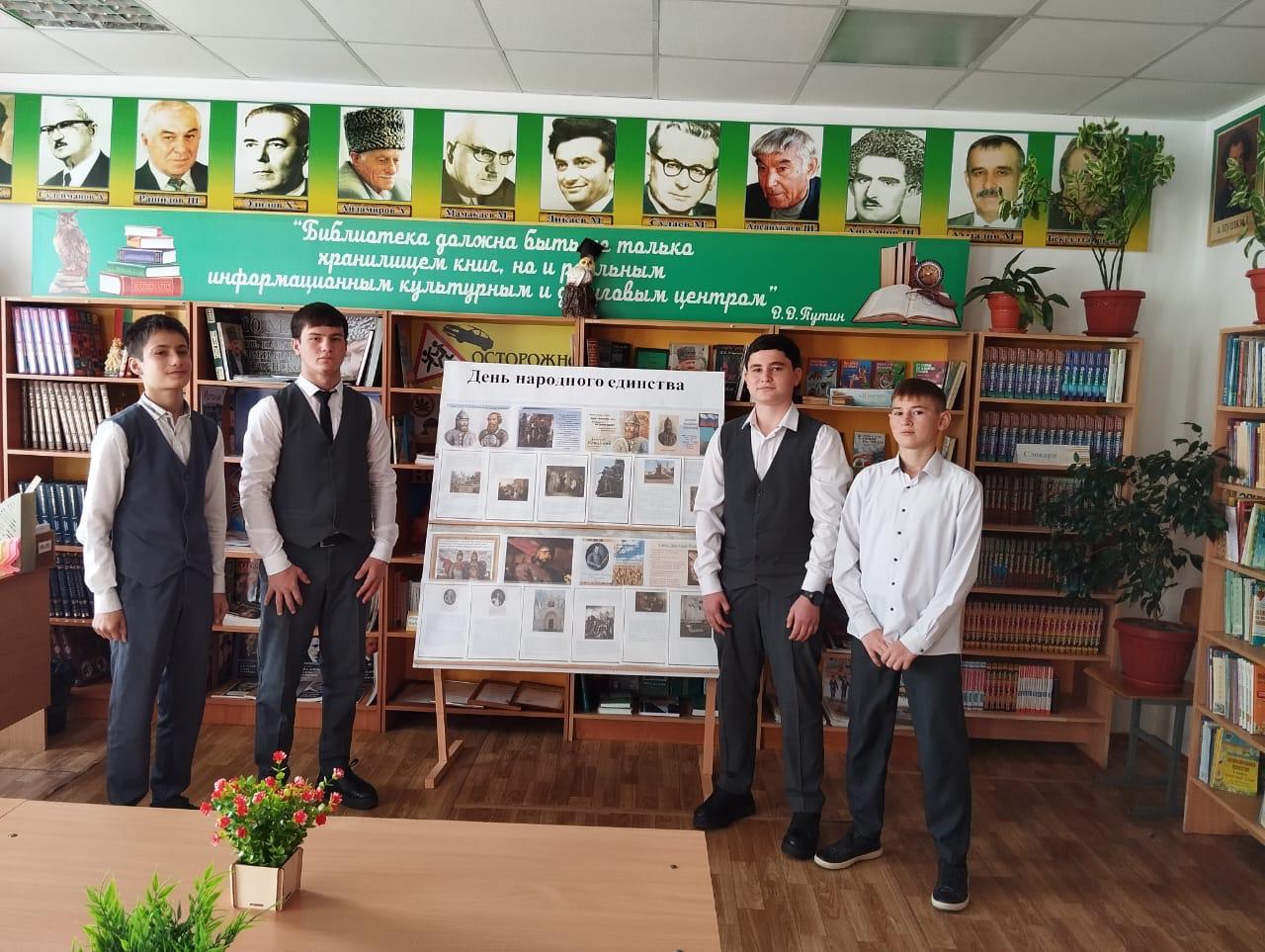 06.11.2024Выставка книг "4 ноября - День народного единства" Каждый год 4 ноября вся наша страна отмечает праздник День народного единства. Ко дню народного единства школьная библиотека радостно распахнула двери для желающих принять участие в уникальной книжной выставке, посвященной единству народа, его культуре и традициям. В честь этого праздника Джабаева М.А., заведующая библиотекой оформила книжную выставку «День народного единства». На выставке были представлены произведения отечественных авторов, отражающие многогранность истории, а также литература, посвященная национальному самосознанию и ценностям единства. В ходе выставки обучающиеся познакомились с энциклопедиями, книгами, которые рассказывают о подвиге К.Минина и Д.Пожарского, о героизме и сплочённости многонационального народа. Каждый посетитель смог не только ознакомиться с исконными произведениями, но и установить глубинный контакт с историей народа через книги, которые затрагивают важнейшие моменты в развитии России.