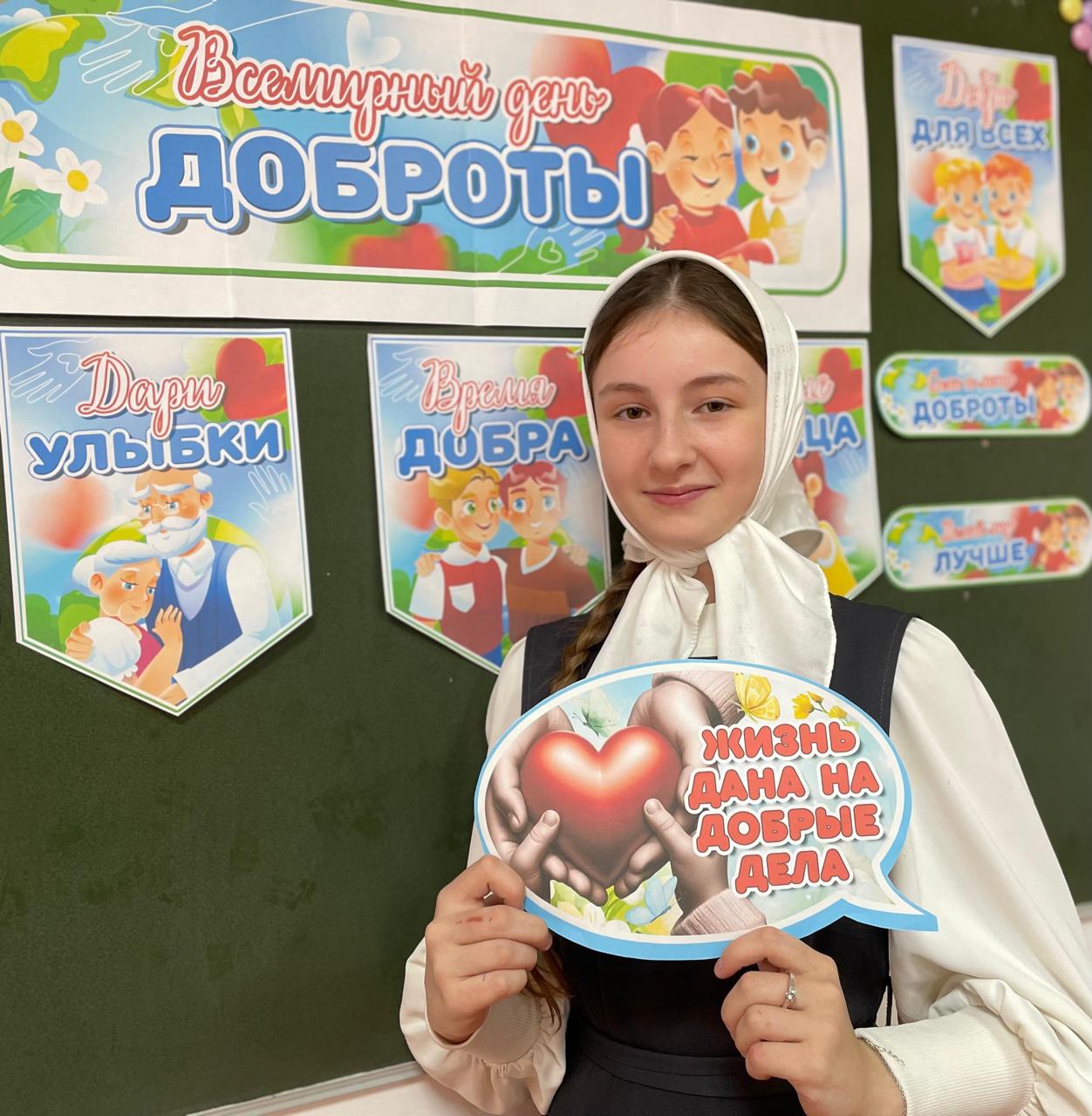 13.11.2024Урок доброты «Нам через сердце виден мир…» 13 ноября – Всемирный день доброты, это отличный повод вспомнить, что добрые поступки и милые моменты делают наш мир чуточку теплее. 13 ноября 2024 года Гаибова Амина Алхазуровна, советник директора по воспитанию провела урок доброты для обучающихся 7-х классов «Нам через сердце виден мир…», посвященный Всемирному дню доброты. Аминат Алхазуровна рассказала о значении дня доброты, подчеркнула, что доброта – это не только акт помощи, но и проявление уважения к окружающим. В ходе урока ребята обсудили что такое доброта, привели примеры добрых поступков из своей жизни, а также поделились своим мнением о том, как можно проявлять доброту в повседневной жизни.