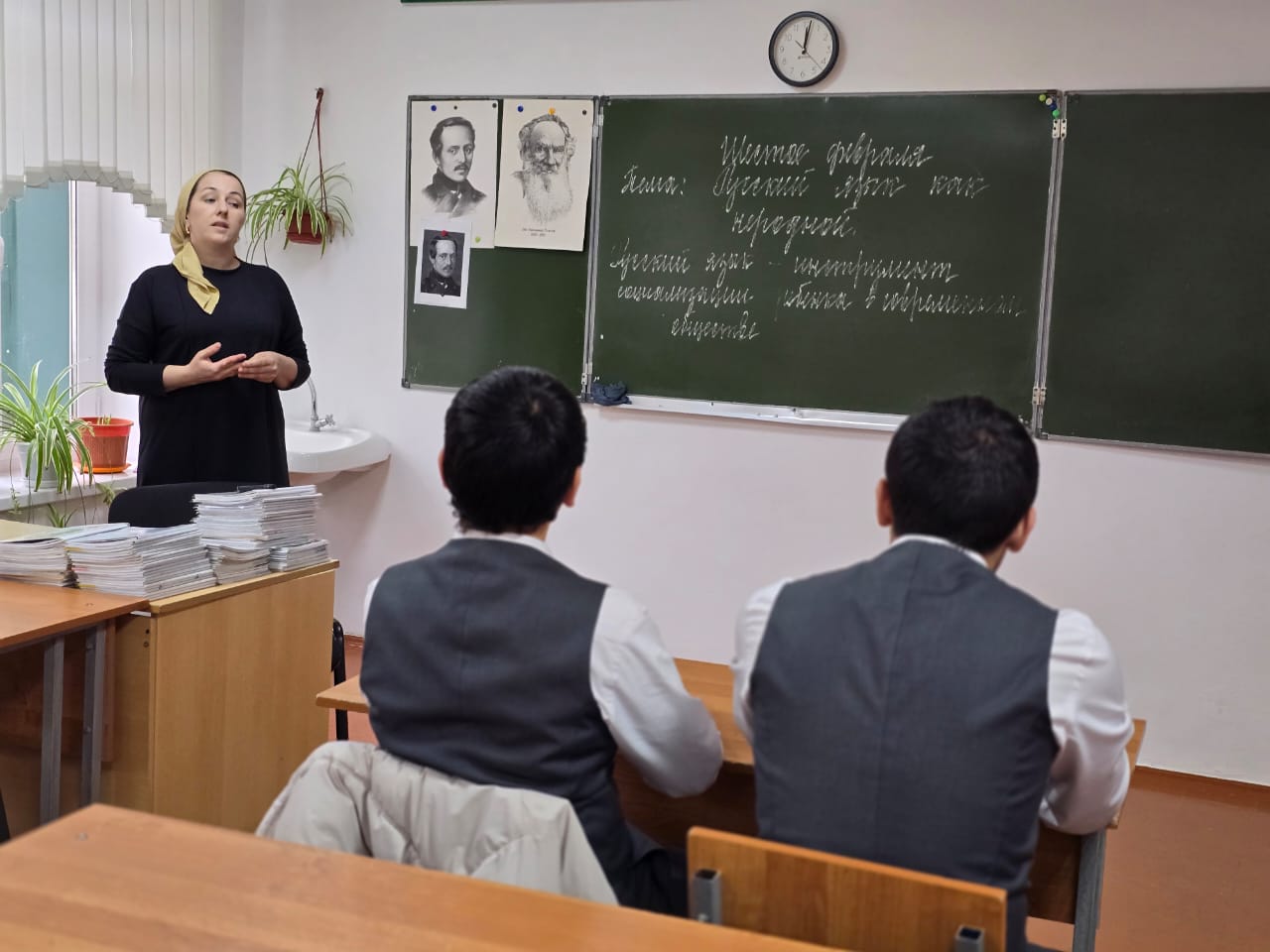 06.02.2025📚 Проектная работа «Мой русский язык» — адаптация мигрантов из ближнего зарубежья и обучение их русскому языку и культуре». Сегодня, 6 февраля 2025 года Маркаева Р.Р., учитель русского языка и литературы провела с обучающимися иностранных граждан (мигрантами) проектную работу по двум основным направлениям. 💡Занятия по обучению мигрантов (в первую очередь – детей и подростков) основам русского языка – это языковая адаптация. 💡Знакомство с культурой города и края, посещение музеев и экскурсий. 🧾 Язык – главное средство социализации и образования… Без владения языком невозможно изучение других школьных предметов. Нужна нормативно-правовая, учено-методическая и кадровая база обучения детей русскому языку.