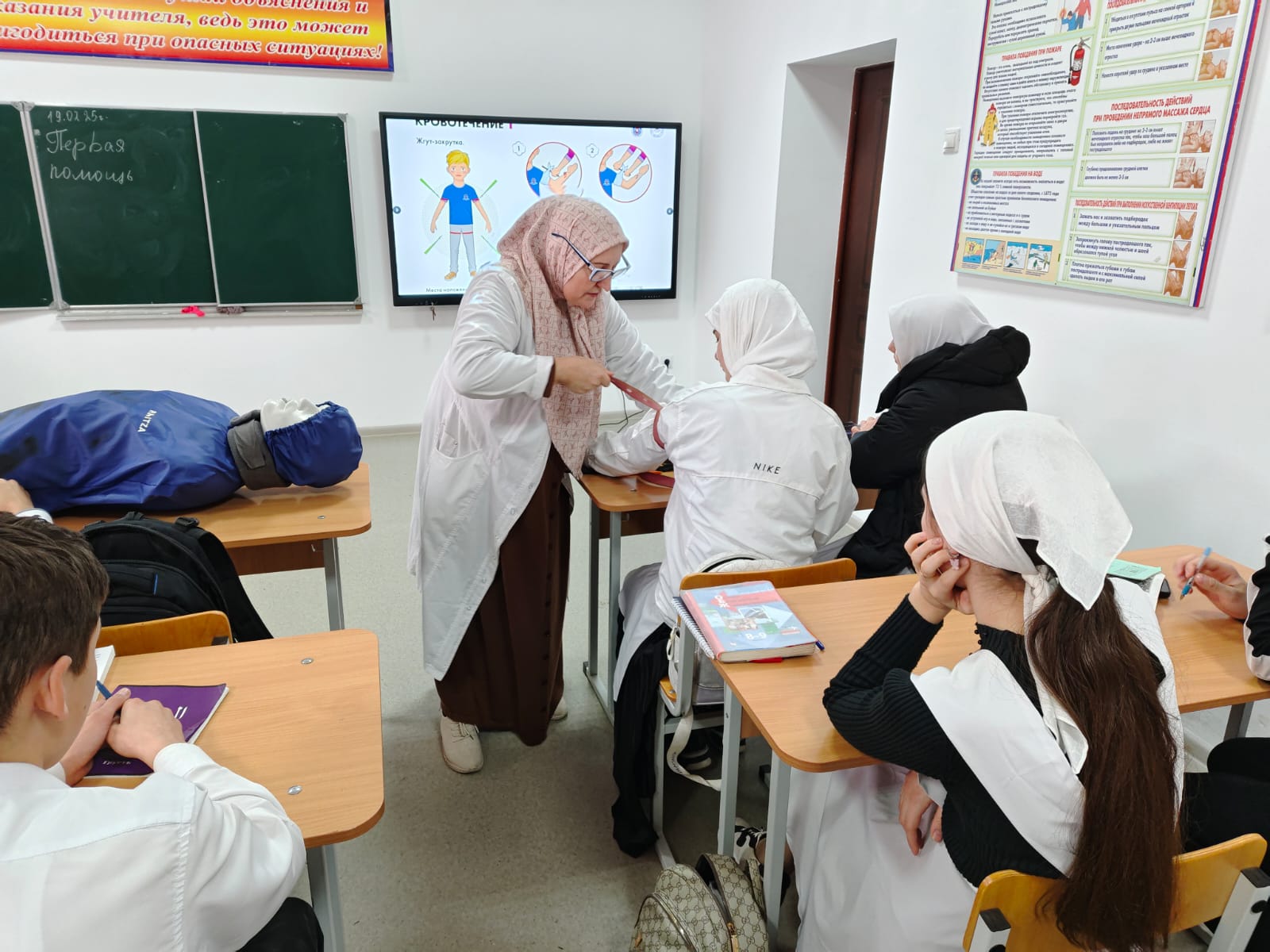 19 февраля в школе прощел практикум по оказанию первой помощи в 9 классах с участием школьного медработника.