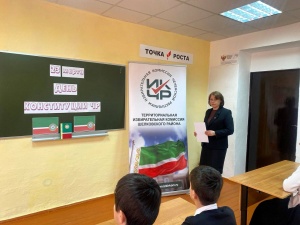 21.03.2025Председателем УИК 347 Ивахненко М.Ю. была проведена беседа с учащимися МБОУ «Бороздиновская СОШ» на тему «23 марта — День Конституции Чеченской Республики».