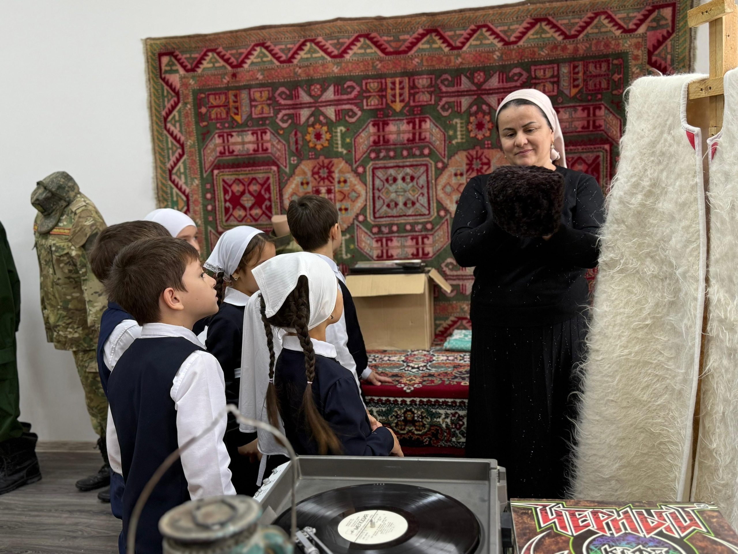 20.05.202514 января 2024г. руководитель школьного музея Алиева Хеди Адамовна провела экскурсию по музею "Связь времён" для обучающихся 1-го класса МБОУ «Шелковская СОШ 4 им. А-Х. Кадырова».Целью данной экскурсии является воспитание патриотизма у обучающихся, любовь и уважение к своей родине, развитие познавательного интереса к истории и культуре родного края.В ходе экскурсии Хеда Адамовна рассказала историю создания музея, показала различные экспонаты, а также рассказала их историю и где они использовались. Это было первое знакомство детей с экспонатами и историческими ценностями музея. Ребята с интересом знакомились разными экспозициями, которые помогли понять и увидеть быт наших предков.Дети были в восторге от посещения музея и с нетерпением ждут новых встреч и интересных экскурсий!