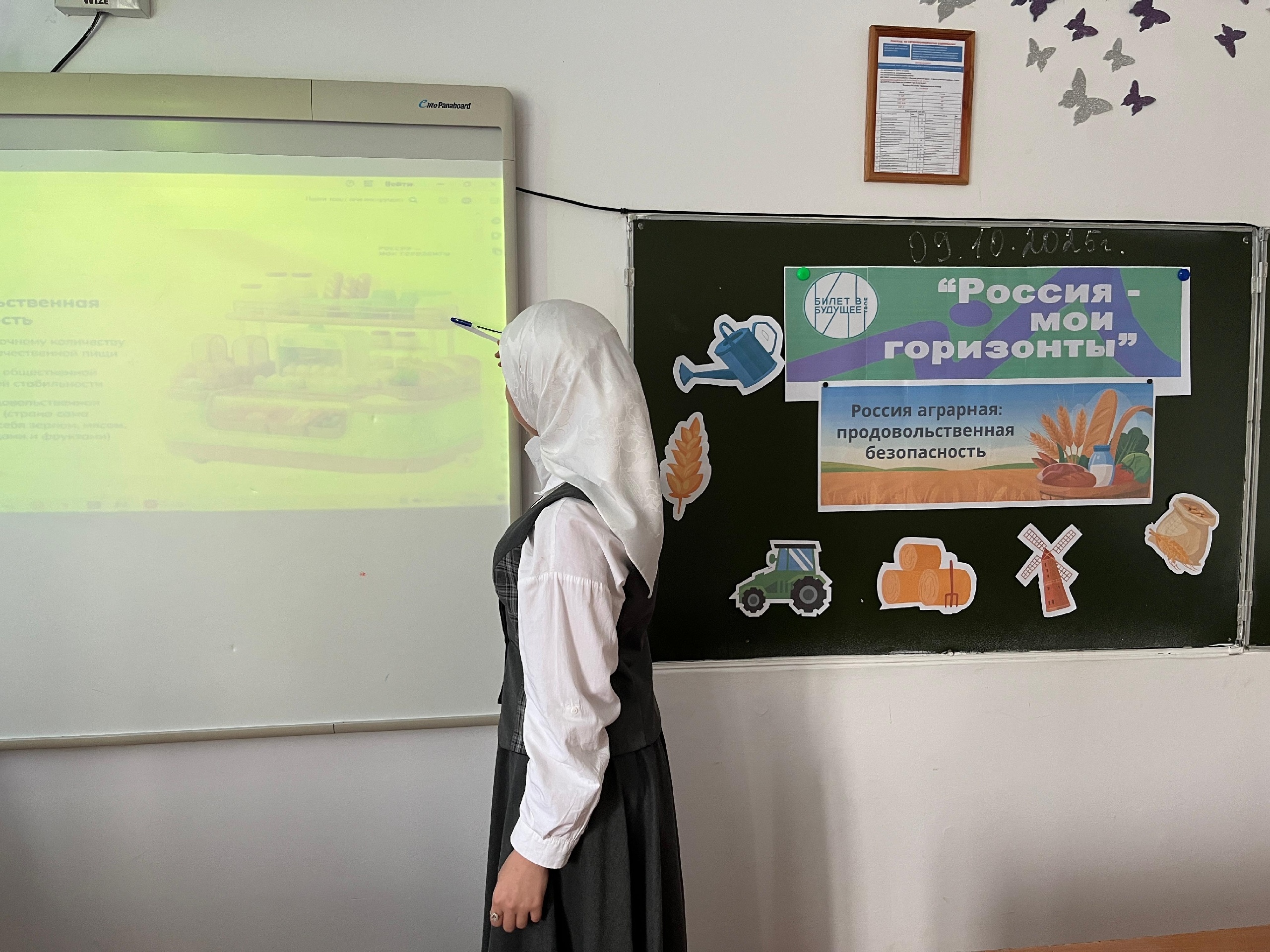 10.10.2025Россия-мои горизонты. Продовольственная безопасность — это целая система: от производства и переработки продуктов до их доставки и хранения. За ней стоят технологии, логистика и работа специалистов агропромышленного комплекса.На занятии в 11 классе "Россия аграрная: продовольственная безопасность " учащиеся узнали о том, что такое продовольственная безопасность и от чего она зависит , какие профессии связаны с обеспечением пищевой стабильности страны и как продукты проходят путь от сырья до готовой продукции. В конце занятия учащиеся составили портреты профессий , узнали, какими личными качествами должен обладать человек определенной профессии, какие условия труда его ожидают и многое др.Зам.директора по ВР З. М. Булуева.