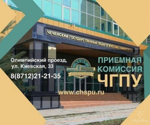 21.06.2018Сегодня в России началась приемная кампания в вузы. Чеченский государственный педагогический университет объявляет прием на обучение по образовательным программам высшего образования - программам бакалавриата, программам магистратуры и аспирантуры. Если вы хотите, чтобы у вас была одна из самых востребованных и уважаемых профессий вне времени и моды, -выбирайте профессию учителя,которая является одной из самых почетных и ответственных профессий. Подробную информацию по вопросам приемной кампании можно получить на официальном сайте вуза www.chspu.ru; a также по телефону: 8 (8712) 21-21-35. Адрес приемной комиссии: Олимпийский проезд, ул. Киевская, 33.