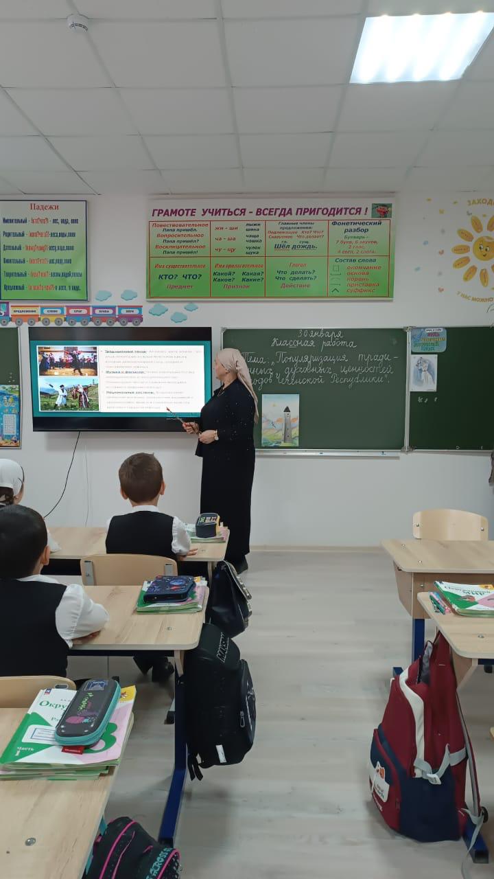 Во время занятия учитель познакомила ребят с основными принципами нравственности и морали, заложенными в традициях чеченского народа. Ученики узнали о семейных устоях, уважительном отношении к старшим, гостеприимстве и значимости сохранения национальных традиций.