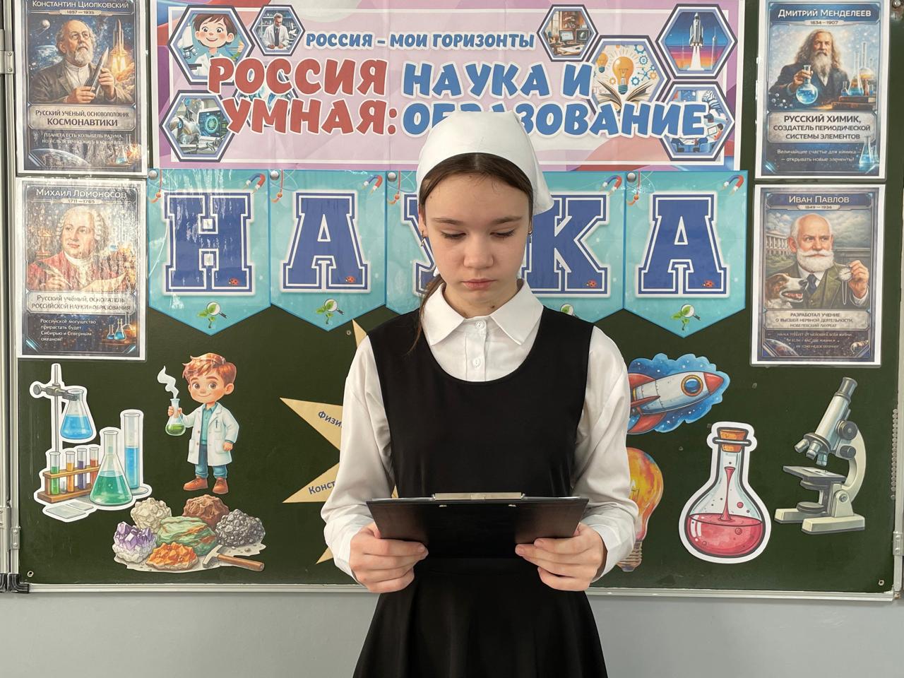 Сегодня в МБОУ «Средняя общеобразовательная школа №3 г. Шелковская» прошла серия познавательных занятий под названием «Россия — мои горизонты», темой которых стала «Россия умная: наука и образование».