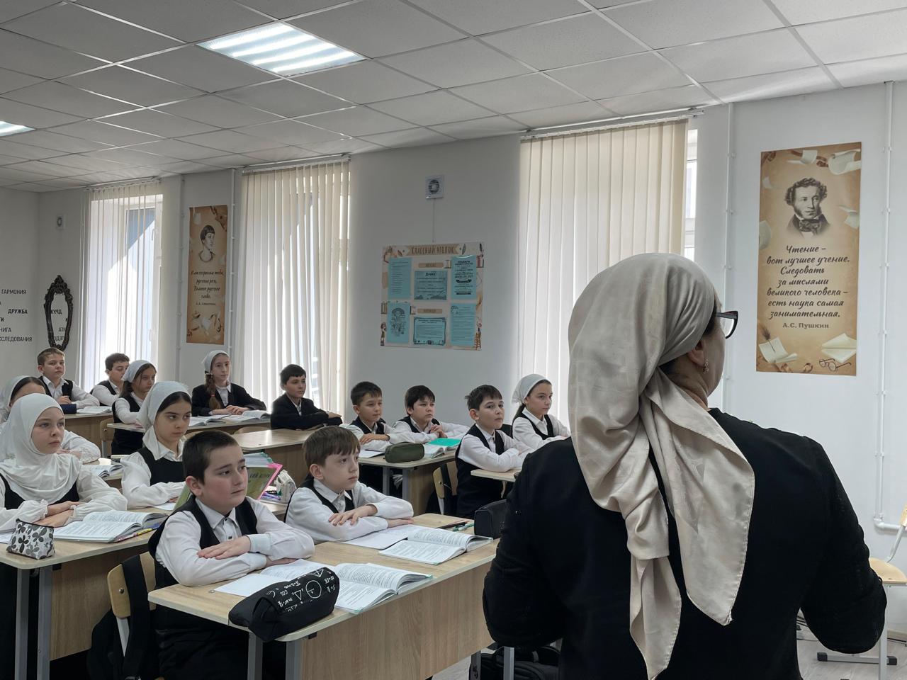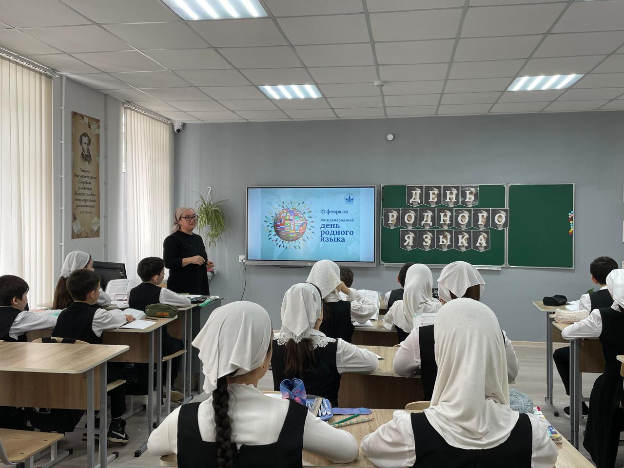 Сегодня в МБОУ «СОШ №3 г.Шелковская» продолжилась серия мероприятий, посвящённая празднику Международного дня родного языка. Под руководством учителя русского языка и литературы Эльдаровой Эльмиры Алаудиновны состоялся яркий и насыщенный урок для учеников 5а класса.